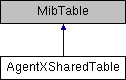 The AgentXSharedTable class is derived from MibTable and represents a shared table between AgentX subagents.